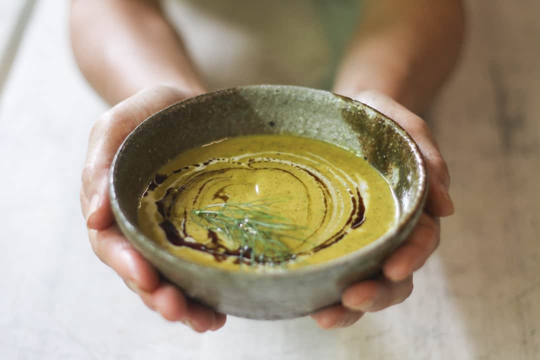 - May drizzle some pumpkin/cumin seed oil, sprinkle some cayenne pepper and garnish with parsley or fennel leave.