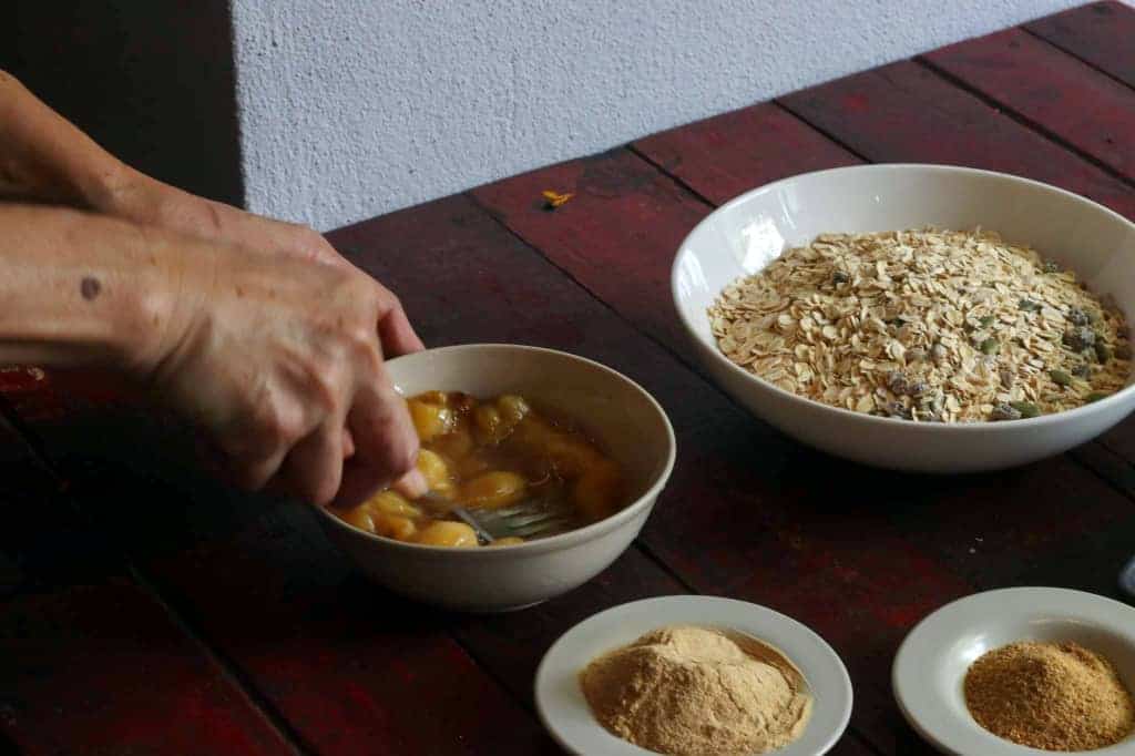 - Mash the banana.