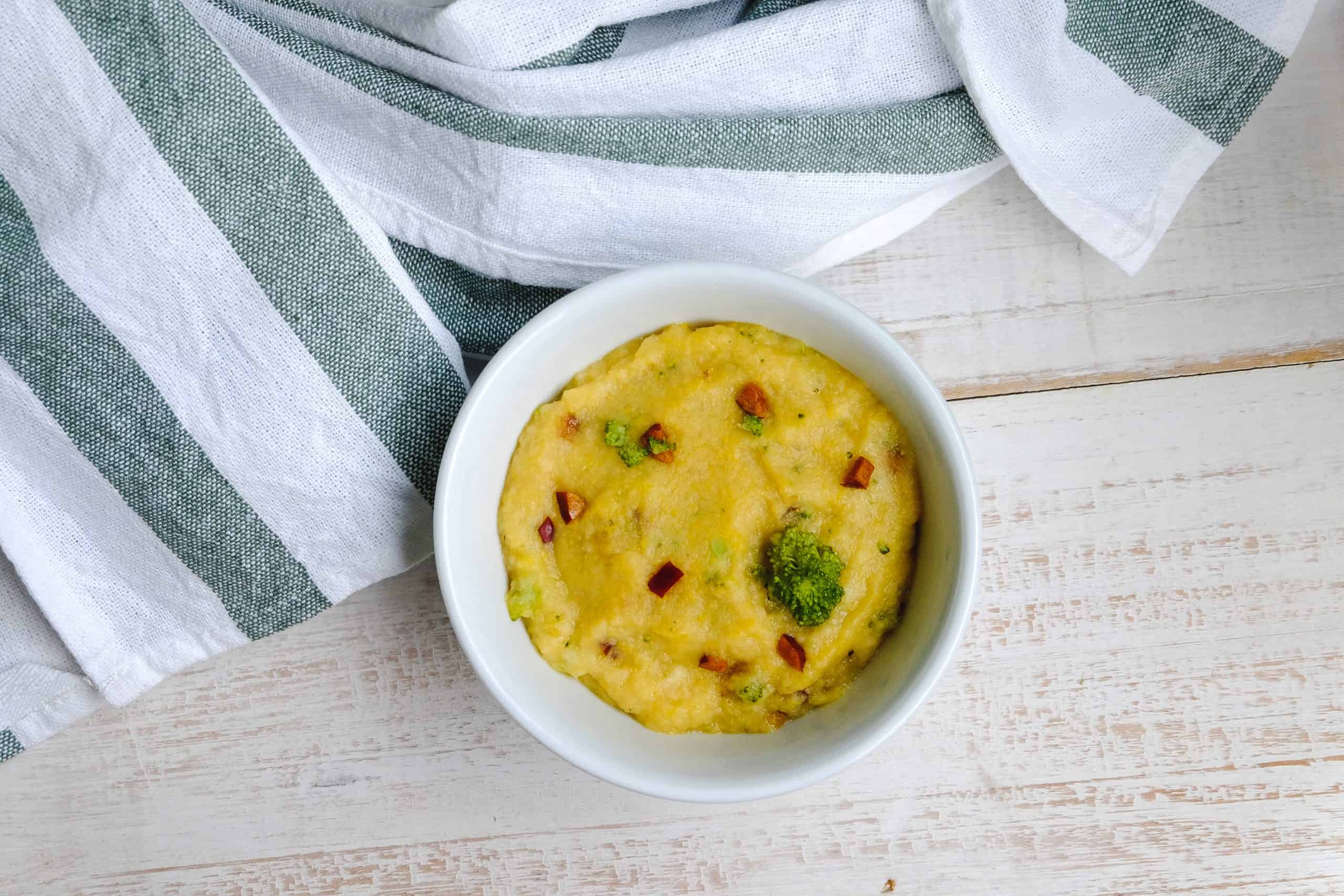 - Cook the sweet corn puree, broccoli and dates in the water for about 7 minutes.